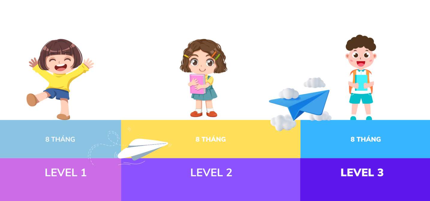 Sử dụng giáo trình chuẩn quốc tế, phù hợp với lứa tuổi . Được xây dựng theo định hướng và bám sát sự phát triển trong năng lực ngôn ngữ của trẻ giúp các con rõ ràng được lộ trình học tập.